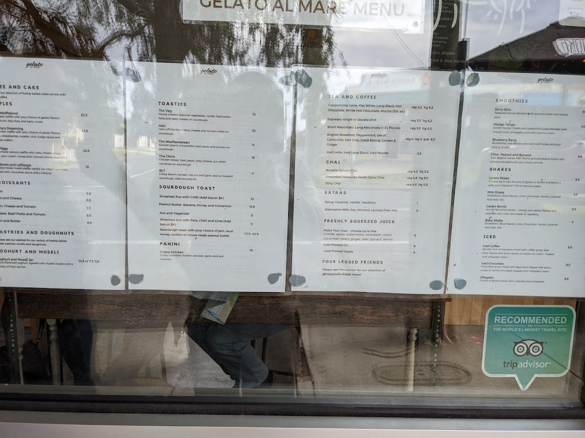 The menu supports breakfast service and casual meals, allowing visitors to select items for quick orders or relaxed dining. It offers a balance of savory and sweet options, including coffee, pastries, and ice cream suitable for different times of the day.